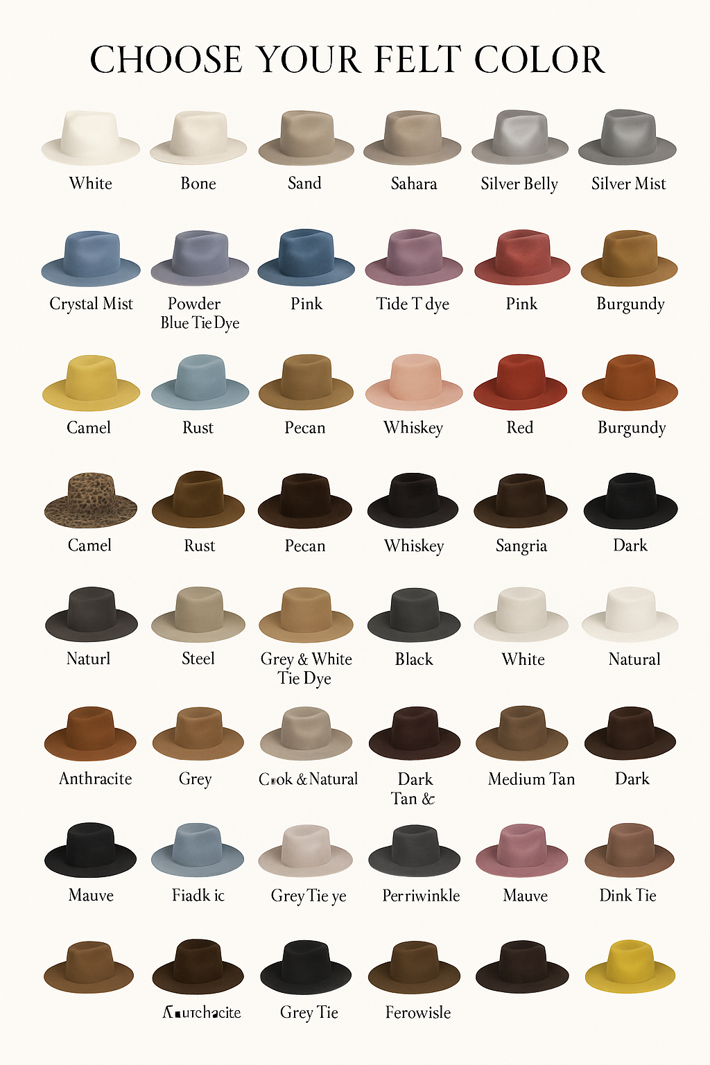- Luxury Fur Felt Series – 100x beaver, rabbit, and mink blends for the discerning hat lover
