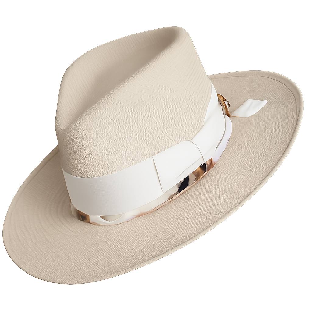 We specialize in handmade hats using the finest materials: premium Bolivian wool, 100x fur felts, and luxury finishes like horsehair bands, vintage ribbons, precious stones, and globally sourced feathers. Every piece is shaped, stitched, and finished by hand — no shortcuts, no mass production. Just heirloom-quality hats designed to be worn, admired, and remembered.